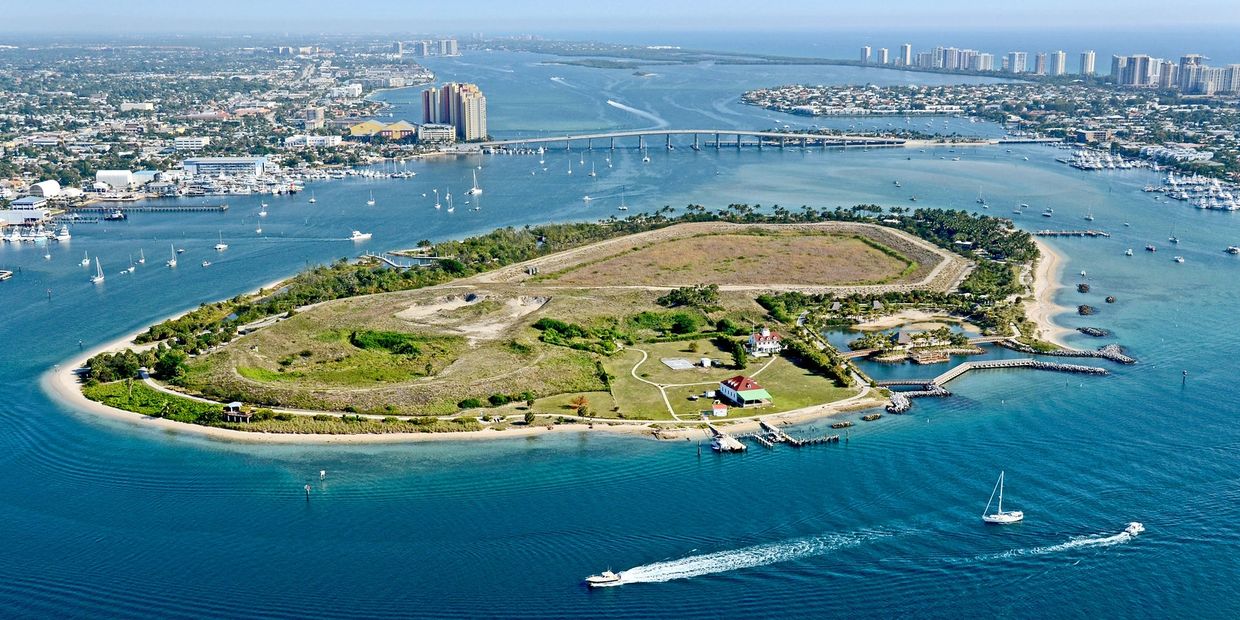 In 1991, the Port of Palm Beach sold the northern part of the island to the Florida Inland Navigation District (FIND) as a spoil site for maintenance dredging. The island maintains its original purpose, as it was first created from dredging the Lake Worth Inlet in 1918. However, only the center of the island is reserved for maintenance dredging. In 1996, the Port Authority and FIND transformed the perimeter of the island into a public park in a long-term arrangement with Palm Beach County. The park expanded to include a hiking trail, observation deck, snorkeling area, picnic areas, campground, restrooms, boat dock, and fishing pier.